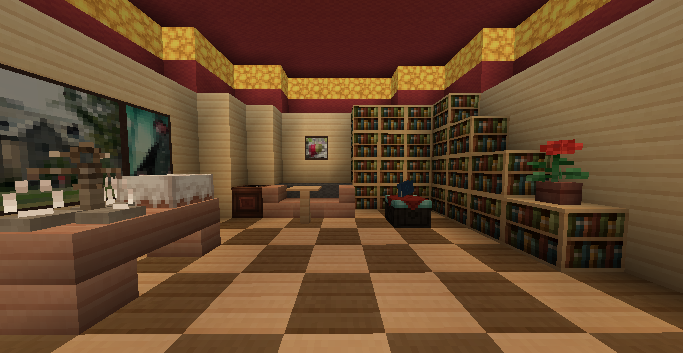 2012/12/24 Category : 箱庭の一隅にて ―minecraft プレイ雑記― 積もり 予(かね)ての腹案通り、ゲーム「ファイアーエムブレム覚醒」のマイユニットを模したスキンを作成した。とは云え、“マイユニット”である故の資料の少なさもあって、多くを想像で拵えた代物なものだから、どうも遣っ付けの感が否めない。然れども、私用する分には問題は無いだろう。一方、ゲーム内では食堂が完成した。無論、Minecraftでの食物は立ち食いな為、飽く迄脳内設定である。ゲームシステムのマルチプレイ化に伴い、simpleNPCやlittleMaidMob等の新Mob追加MODの対応が未だなされていないので、受付や給使の役どころはオオカミが割り当てられた。因みに、1年近くプレイしている中で、僕が家具らしい物を作ったのはこれが初めてであるかも知れない。この建物については概ね満足している。